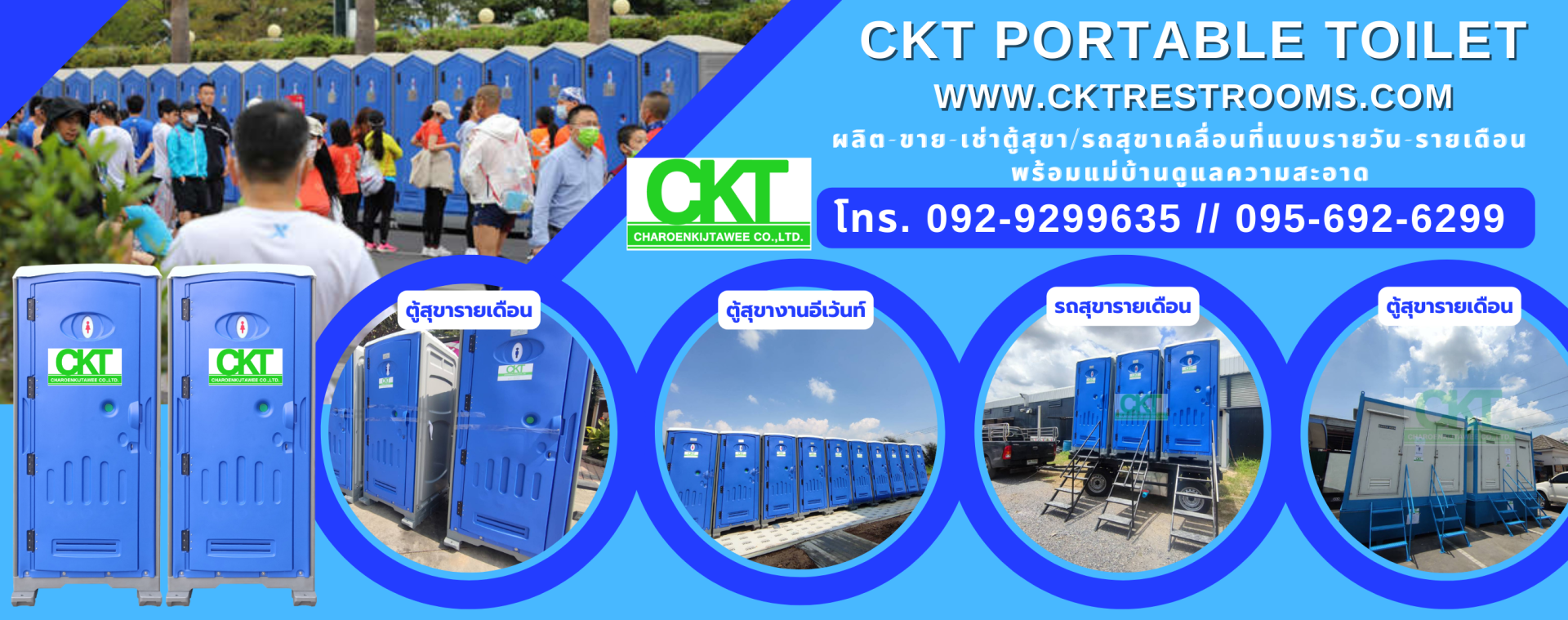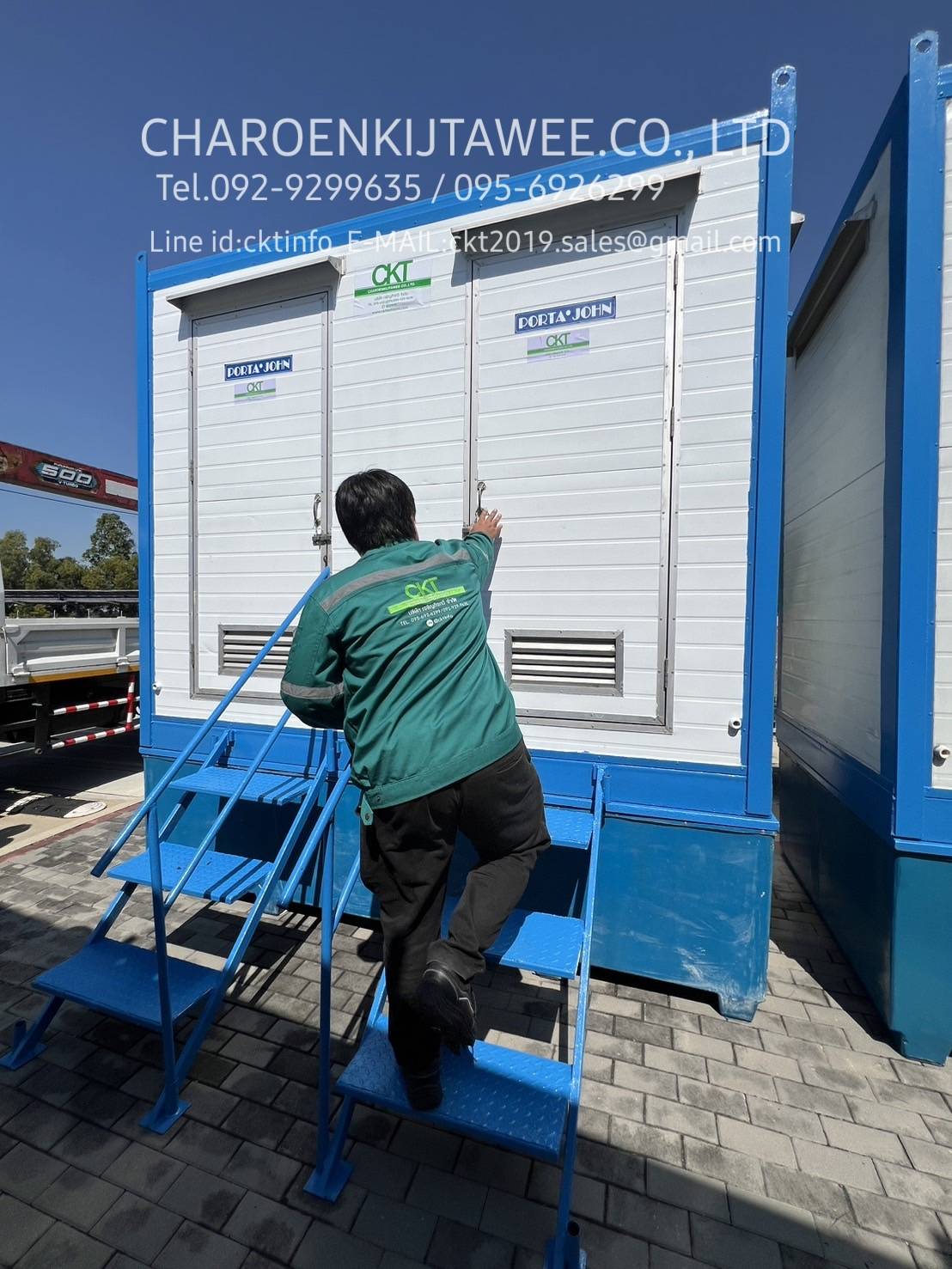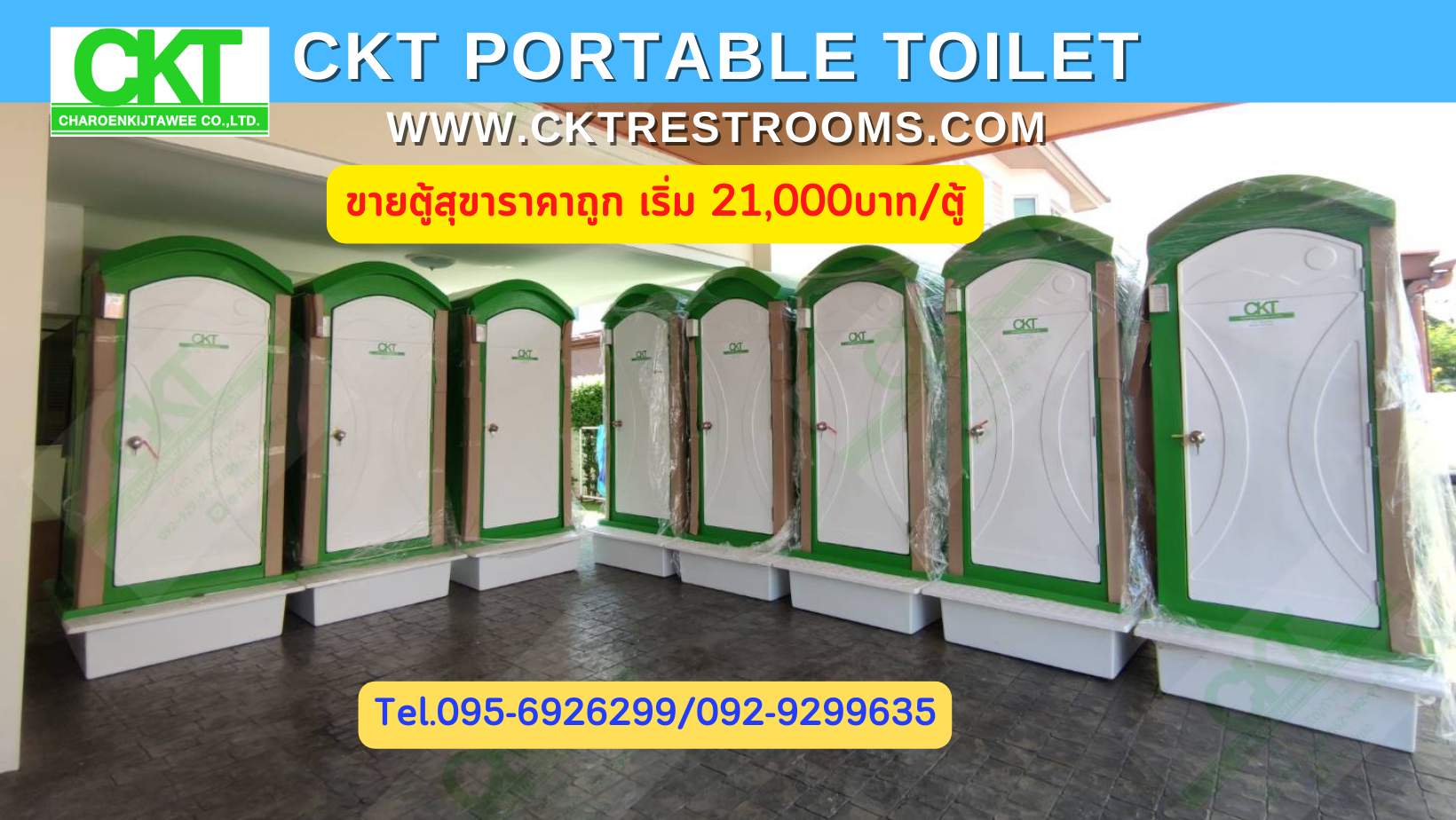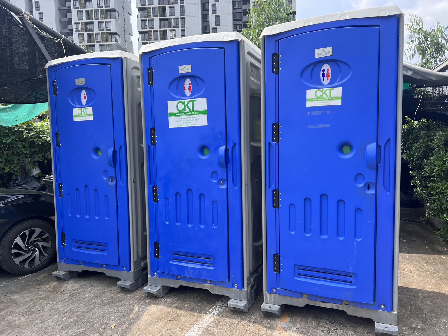 ตู้สุขาเคลื่อนที่ ให้เช่า CKT ราคาเช่าเริ่มต้น 2,500บาท/เดือน เป็นตู้ผลิตจากวัสดุ HDPE ตู้นำเข้า(ไม่ใช่งานไทย)แข็งแรงทนทานสูง ไม่ชำรุดแตกหักง่าย