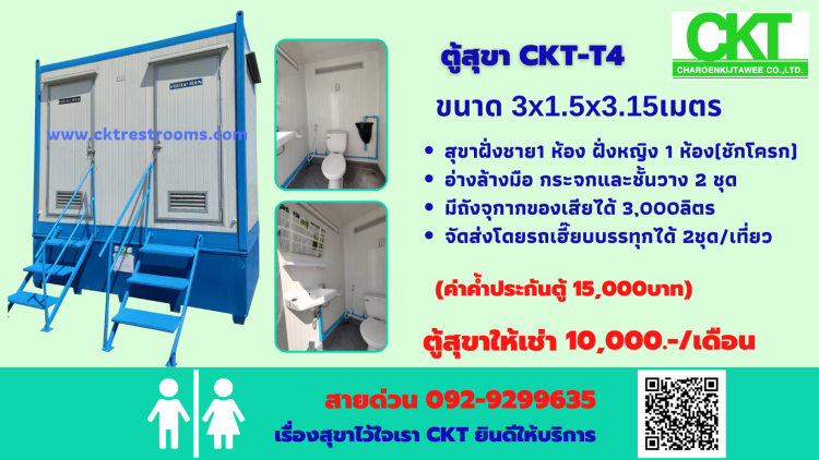 รายละเอียดและสเปคตู้สุขาเคลื่อนที่รุ่นใหม่ ห้องน้ำเคลื่อนที่ของ CKT -T4