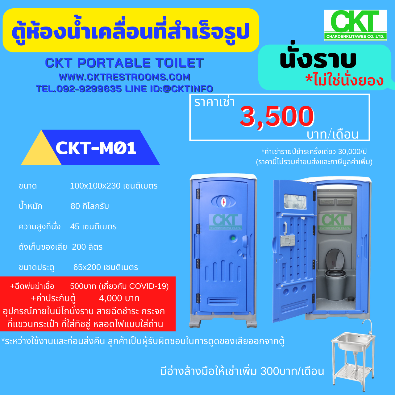 รายละเอียดและสเปคตู้สุขาเคลื่อนที่รุ่นใหม่ ห้องน้ำเคลื่อนที่ของ CKT -M01